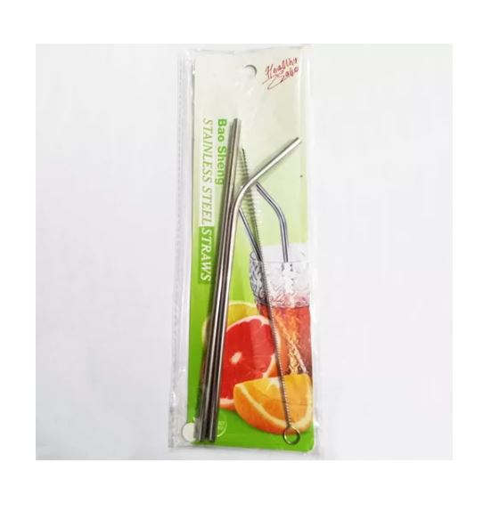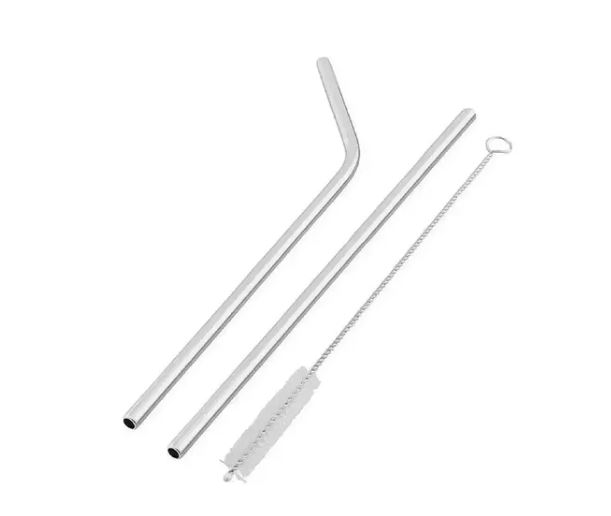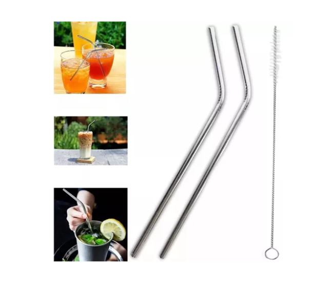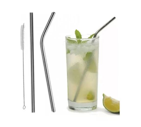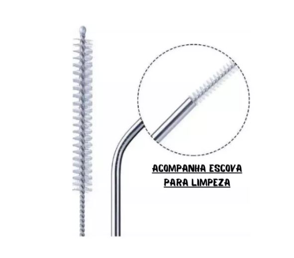 Kit 2 Canudos Reutilizáveis Aço Inox Curvo E Reto 1 Escova