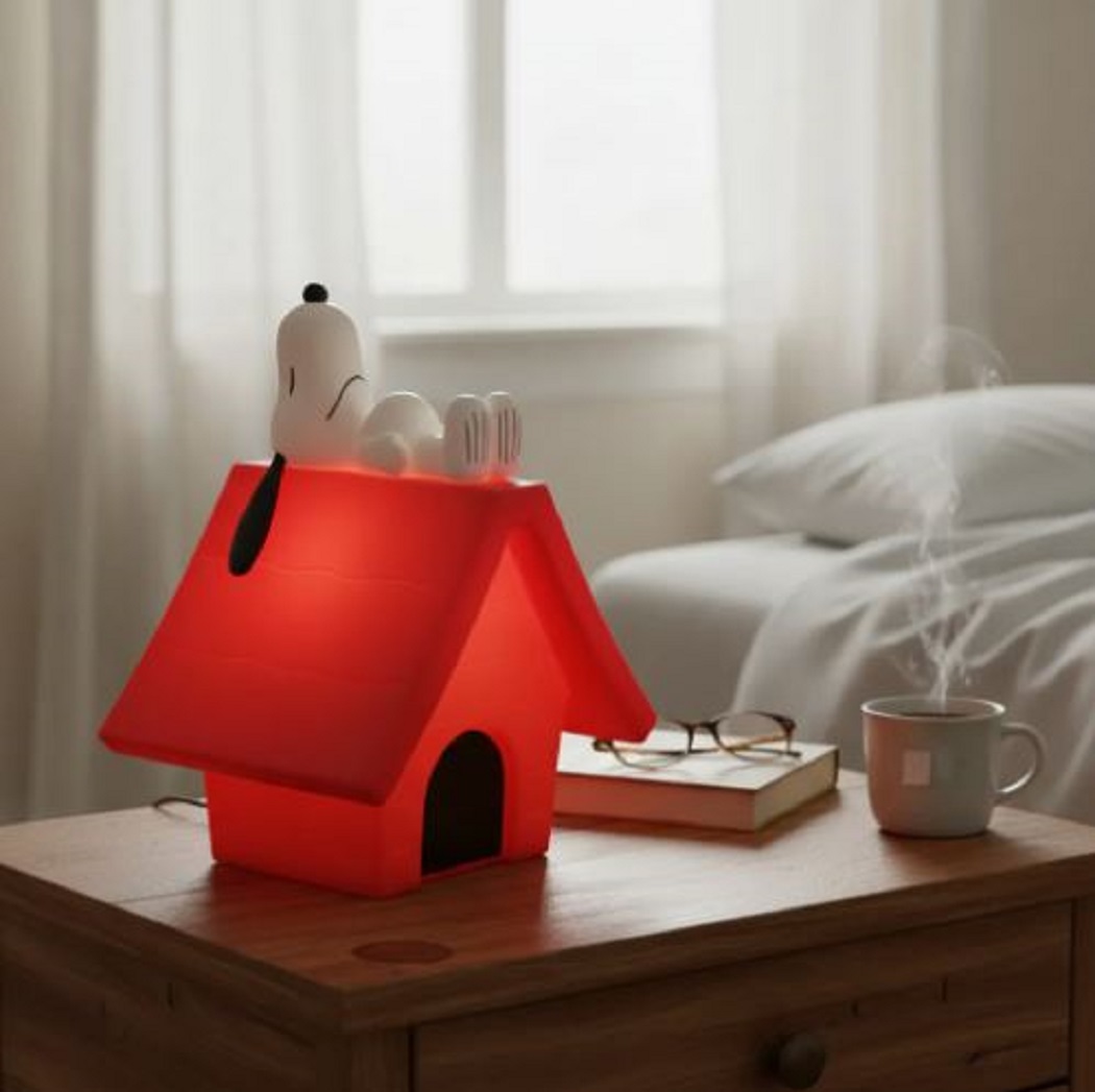 Inspirada no famoso personagem da tira de quadrinhos “Peanuts”, a luminária apresenta o icônico design da casinha do Snoopy, com suas linhas suaves e cores vibrantes.