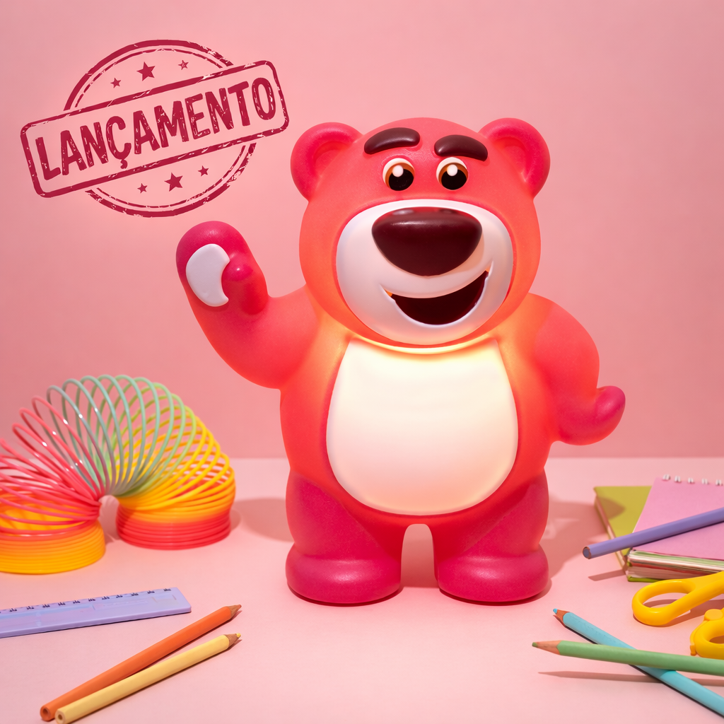 Direto de Toy Story para iluminar seus momentos mais especiais! A Luminária do Lotso traz todo o charme (e aquela carinha irresistível) do ursinho mais icônico da animação.