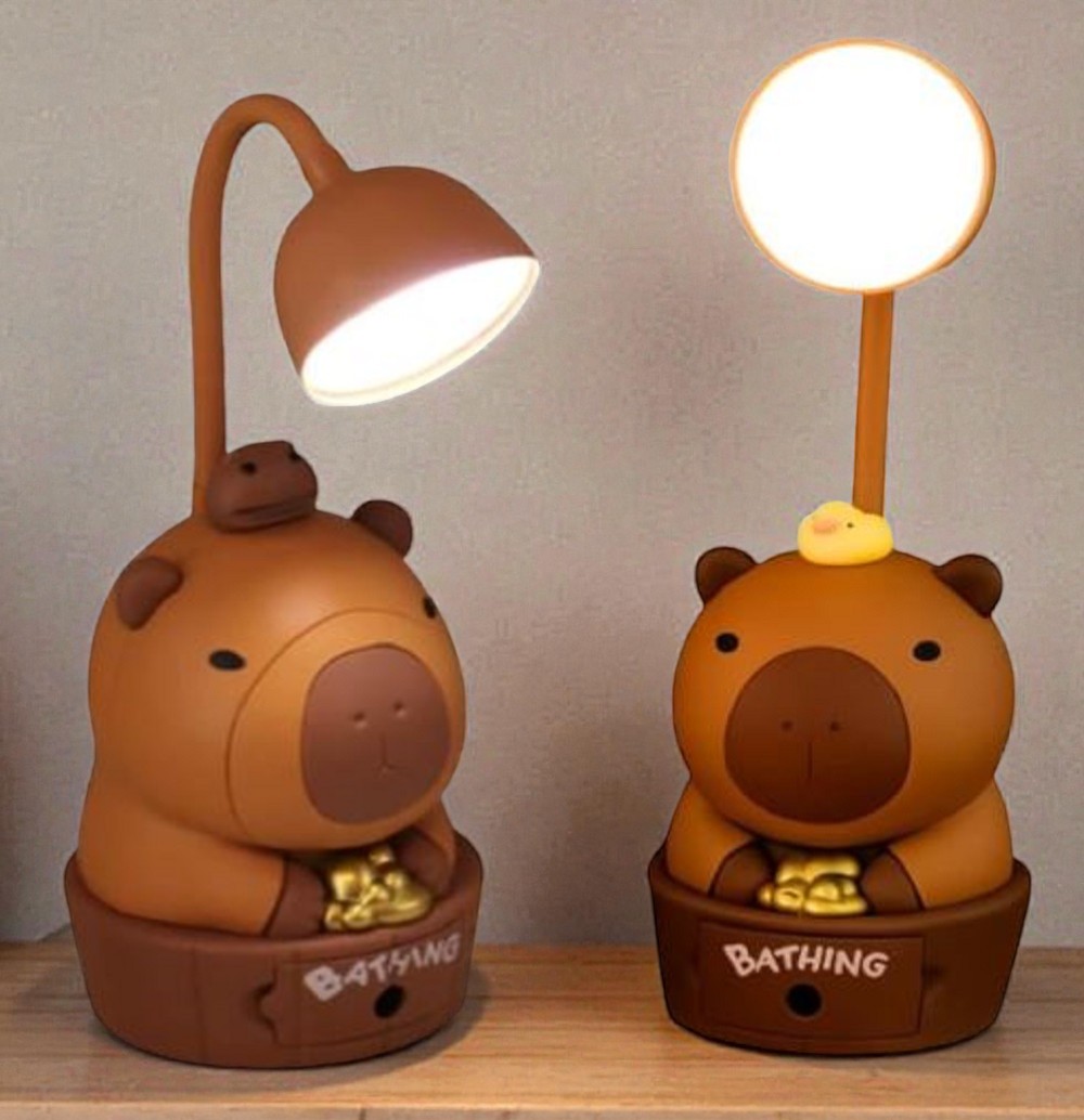 Transforme seu ambiente de estudo ou trabalho em um espaço mais divertido, acolhedor e funcional com a incrível Luminária de Mesa Capivara – Apontador + Luz Noturna USB! Com um design exclusivo e super fofo inspirado em uma capivara segurando moedas douradas, esta luminária é perfeita para presentear ou decorar seu cantinho favorito.