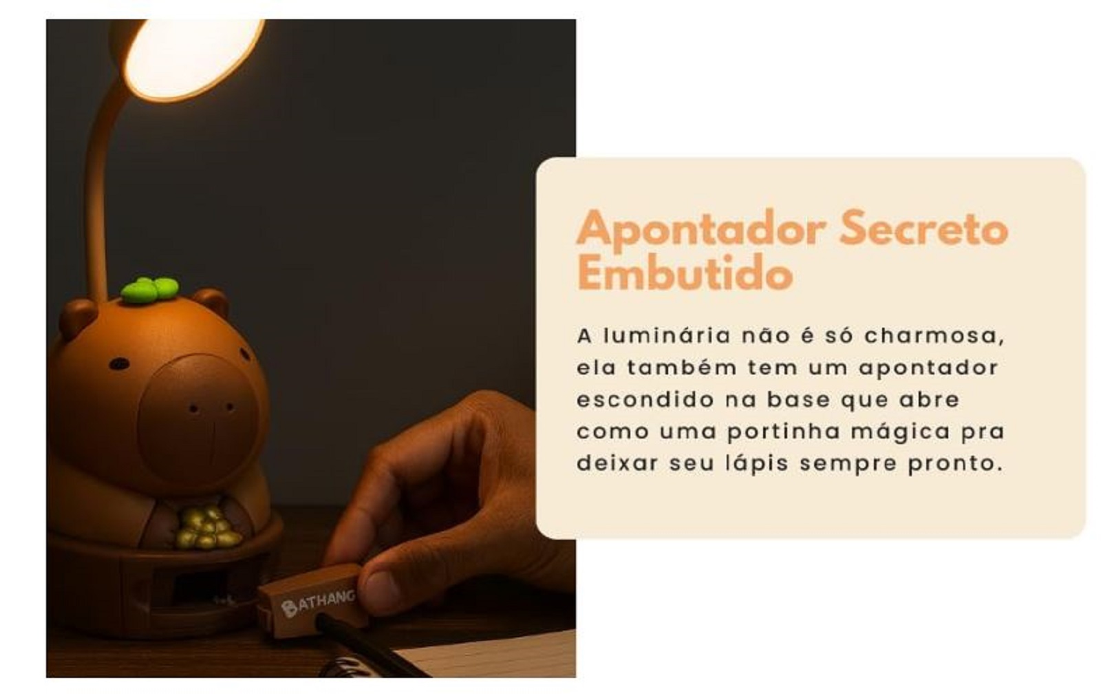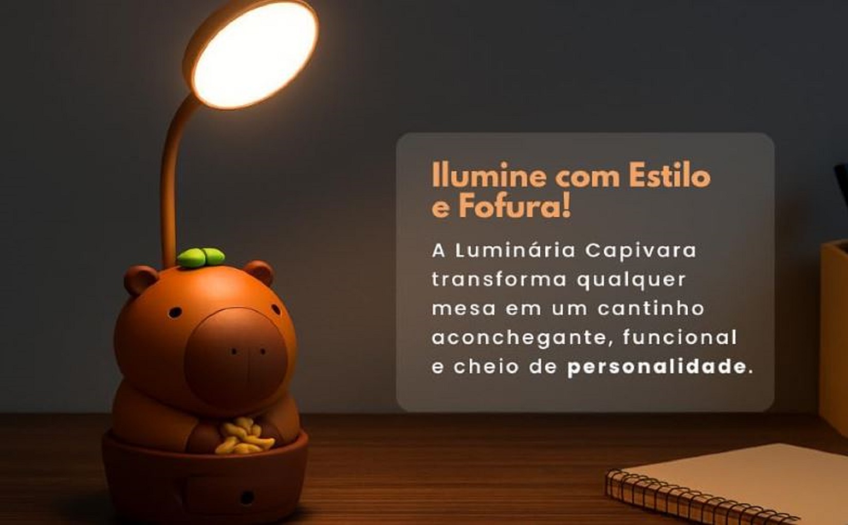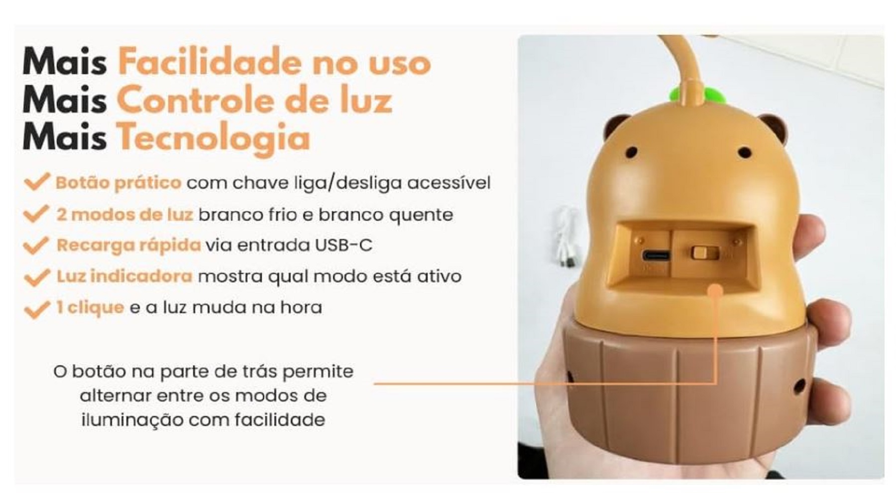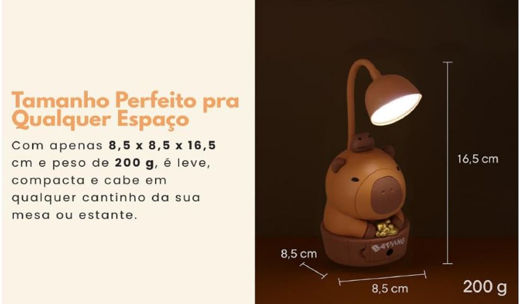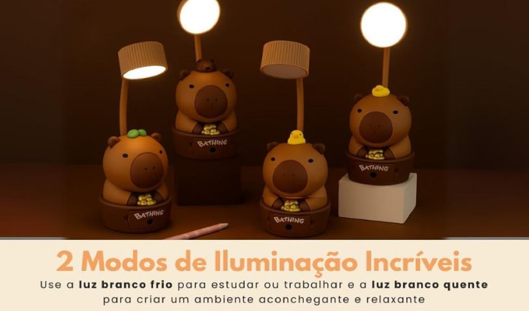 Luminária de Mesa Capivara – Apontador + Luz Noturna USB